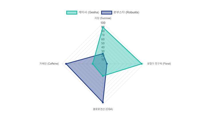 결과적으로 아무리 뛰어난 로스팅 기술을 가졌더라도, 로부스타 품종에서 게이샤 특유의 재스민 향이나 밝은 산미를 끄집어내는 것은 생화학적 설계 자체가 다르기 때문에 불가능합니다.