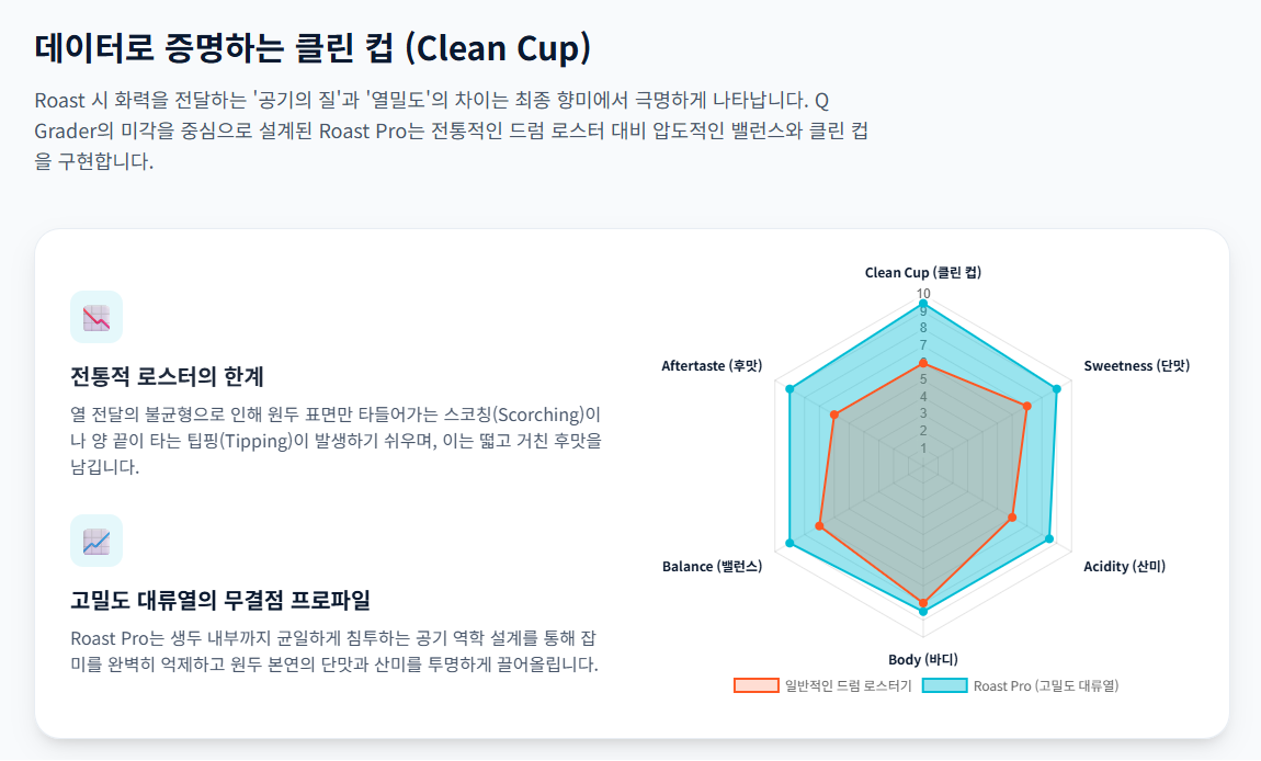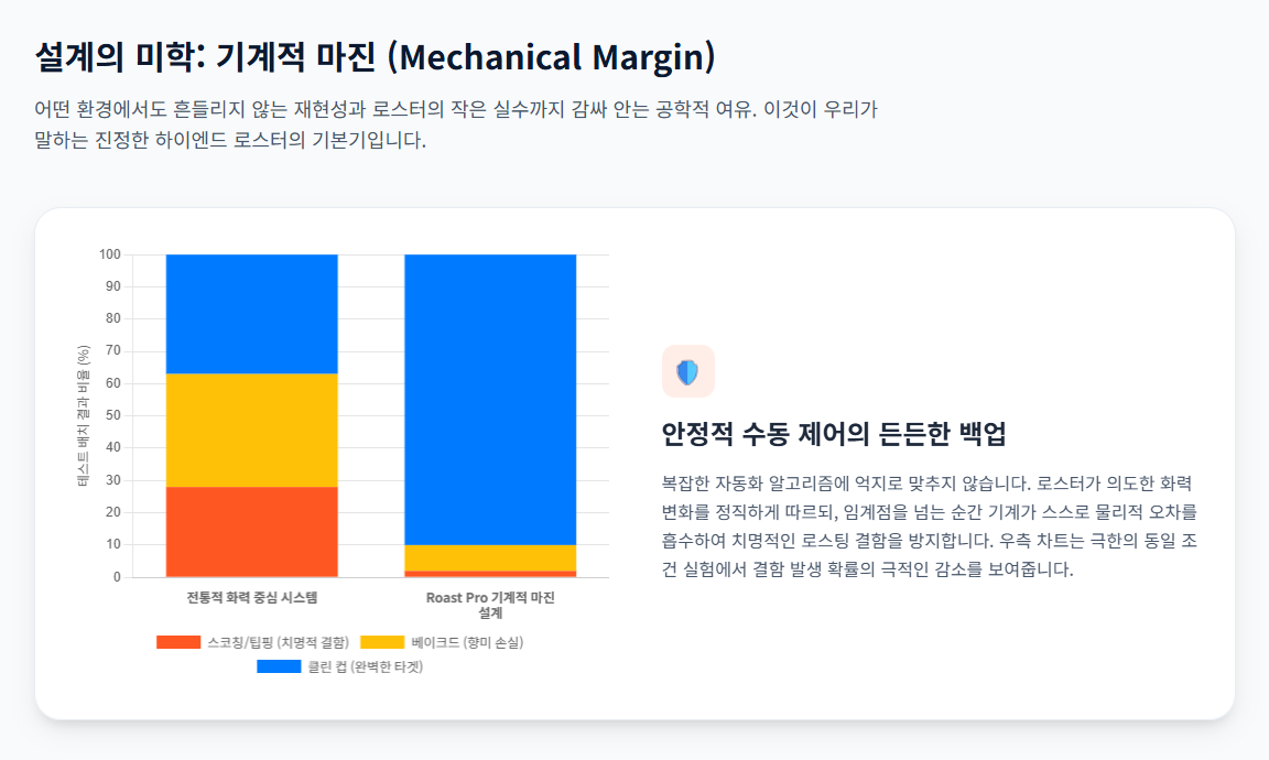 저는 이 물리적 한계를 극복하기 위해 열역학적 설계를 바탕으로 Roast Pro를 완성했습니다.
