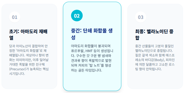 - 의미: 이 단계에서는 색상이나 향미의 변화가 거의 감지되지 않지만, 이후 발생할 거대한 화학적 폭발을 위한 전구체(Precursor)가 농축되는 시기입니다.
